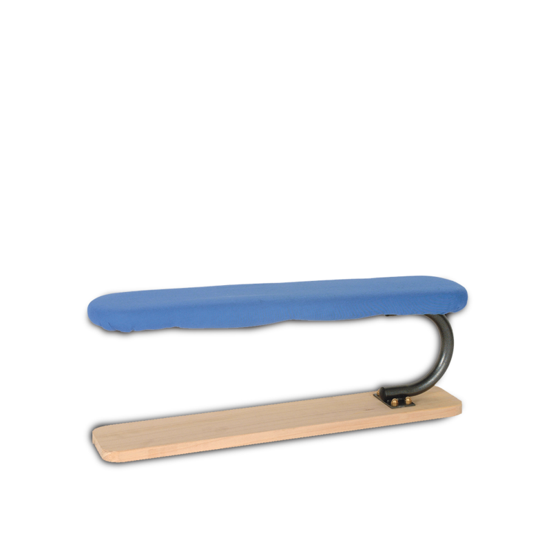 Pied à manche en bois pour femme avec tissu en feutre et polyester bleu.